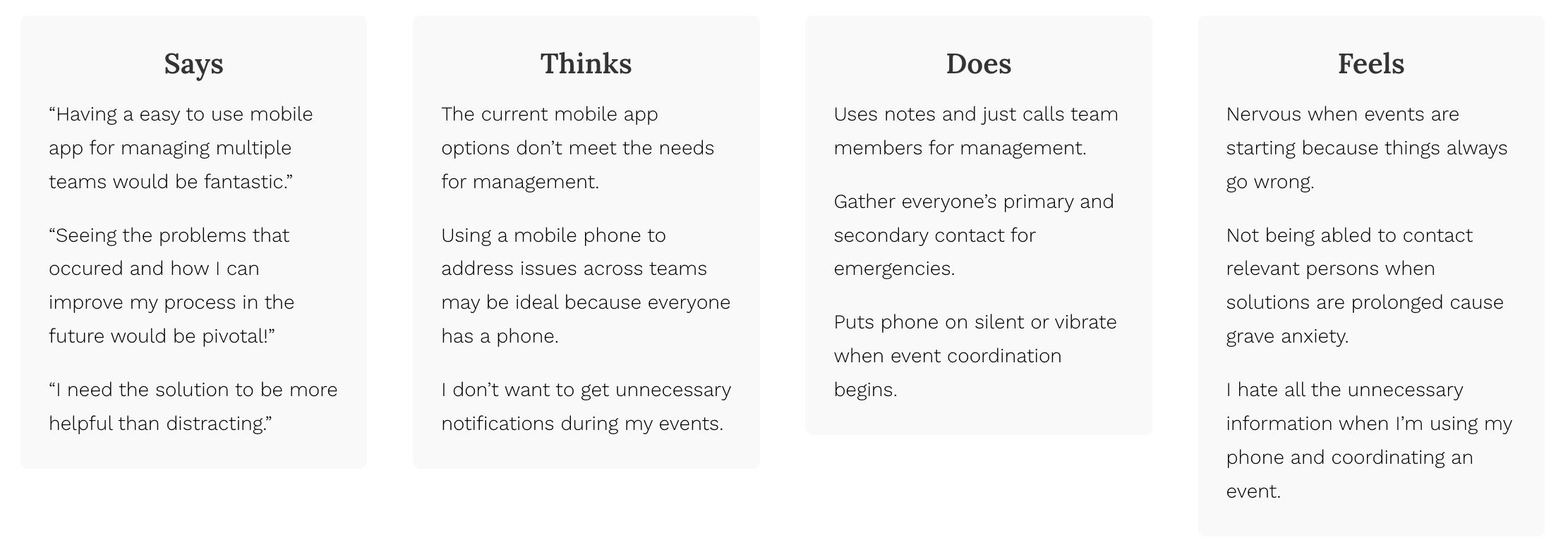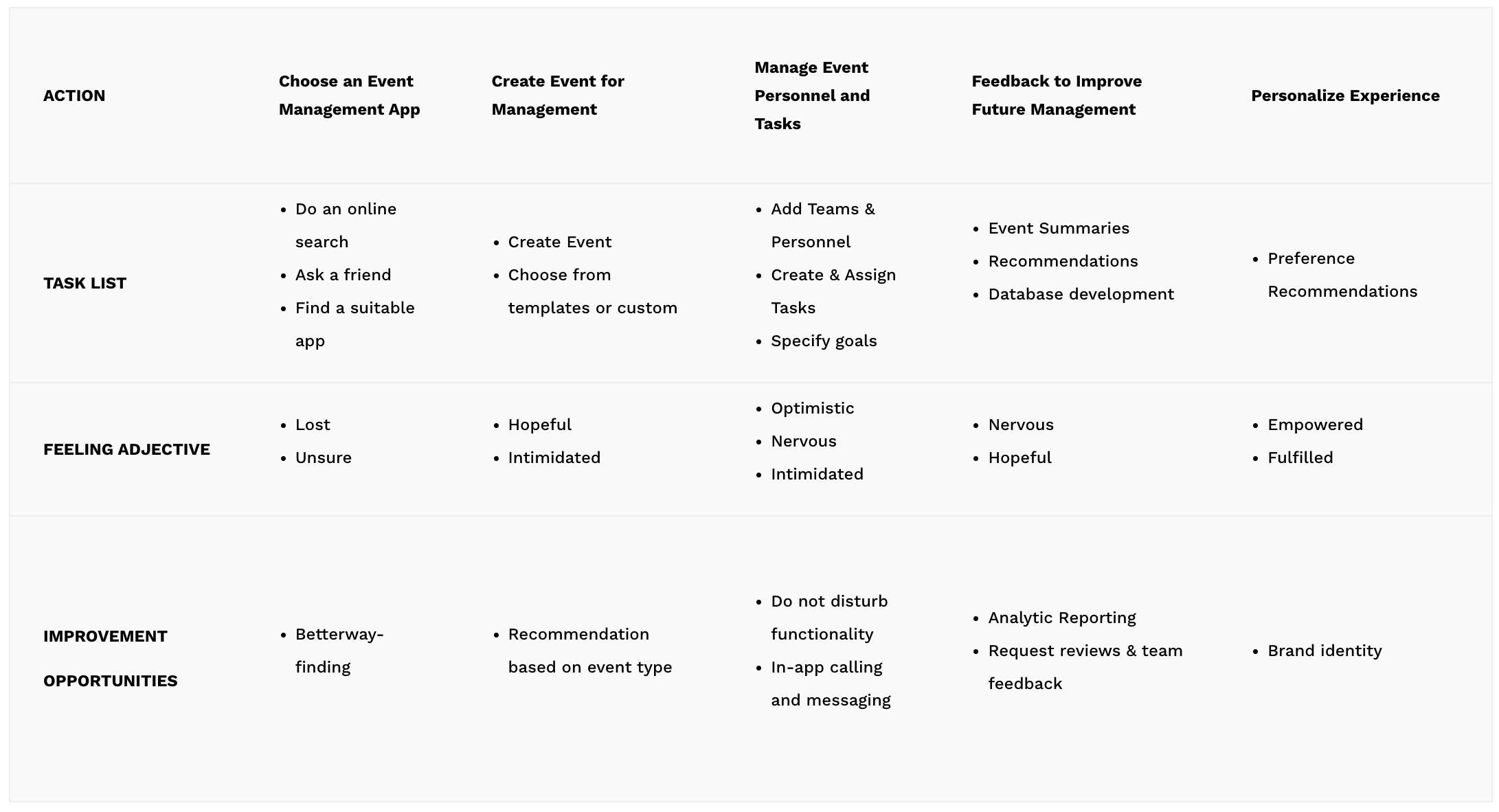The challenge identified was to create a task manager that could allow event task managers, primarily general coordinators, to do all of the following within a mobile app: