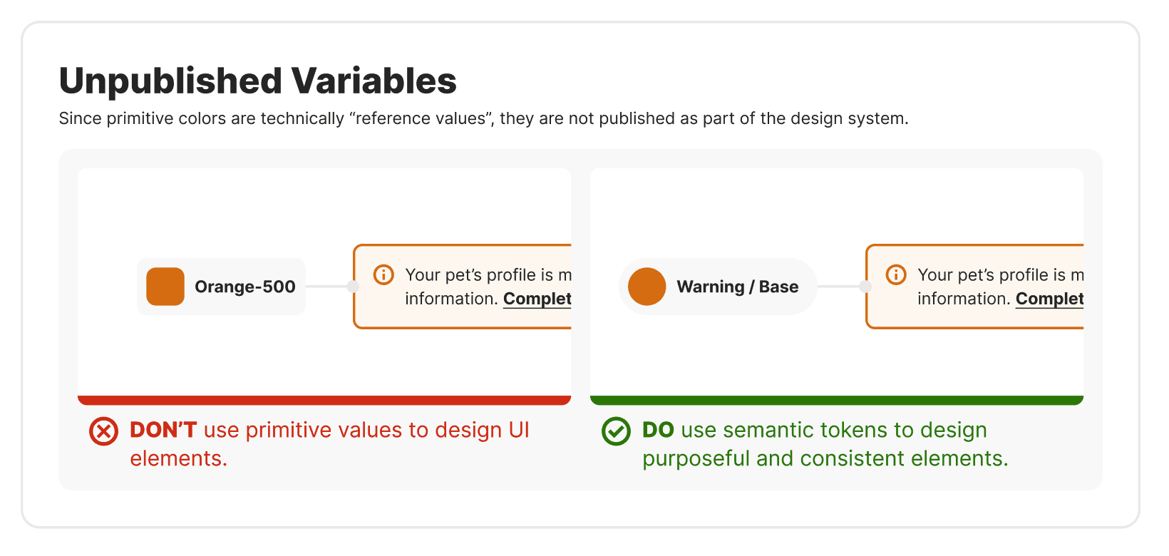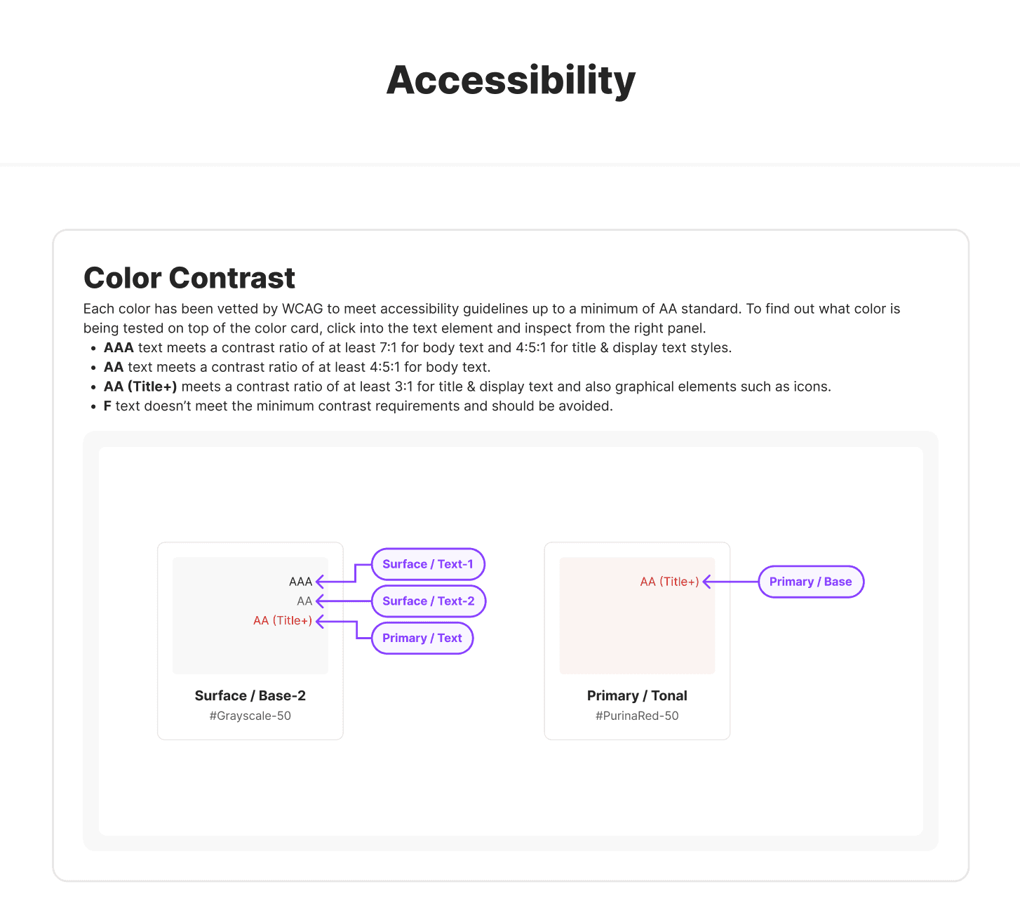 The Petfinder design system was never fully documented and also had major accessibility issues throughout. This inevitably slowed the design process for the design team and failed multiple WCAG compliance tests. I identified these issues early on and got buy in to properly addressing these major issues, restructuring documentation and fully tokenizing in Figma.