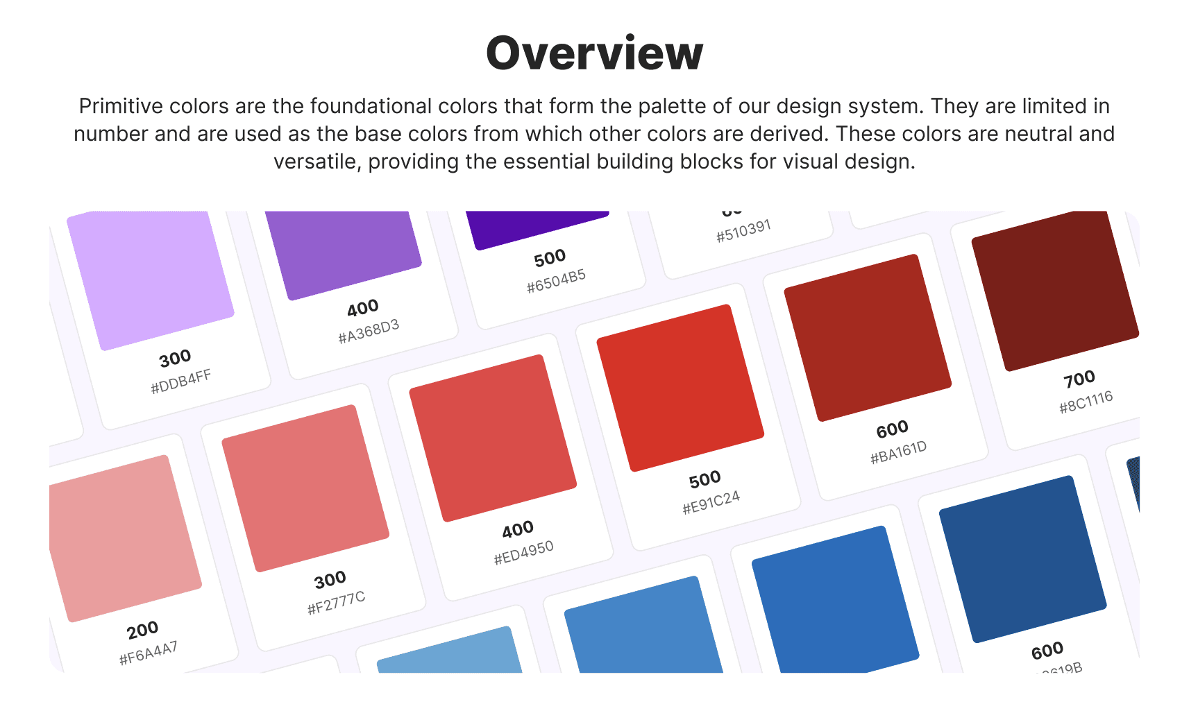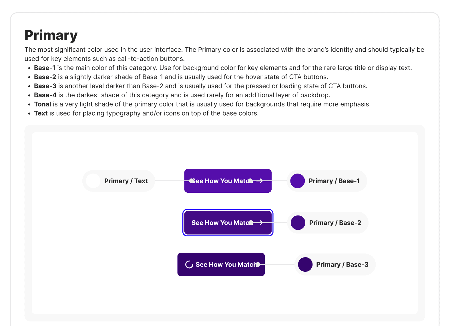 After a full extraction of the styles use throughout the UX, I fully documented the primitive colors and began to establish ways of working with these from the primitive layer. I proceeded to do the same for typography, borders, effects and layouts.