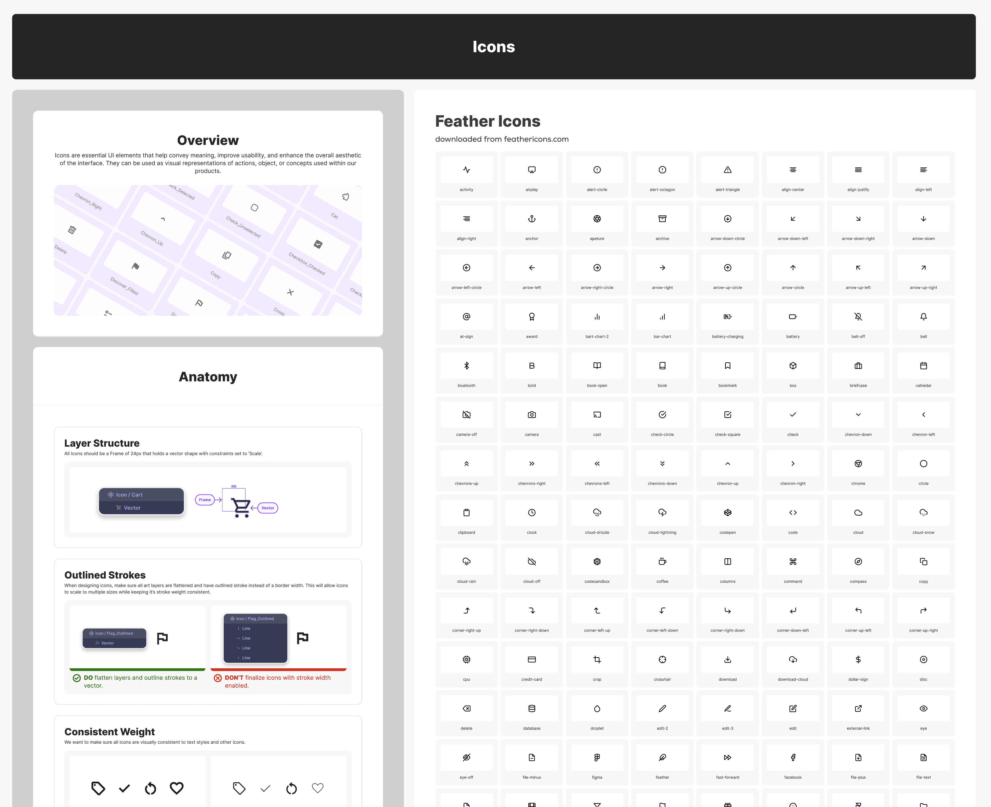 The extraction of the iconography also highlighted some glaring issues with a mix of styles and sizes, added to a lack of proper usage of containers for scalability. I was able to get buy-in on streamlining the styles of most of the icons used throughout the UI which really helped with consistency.
